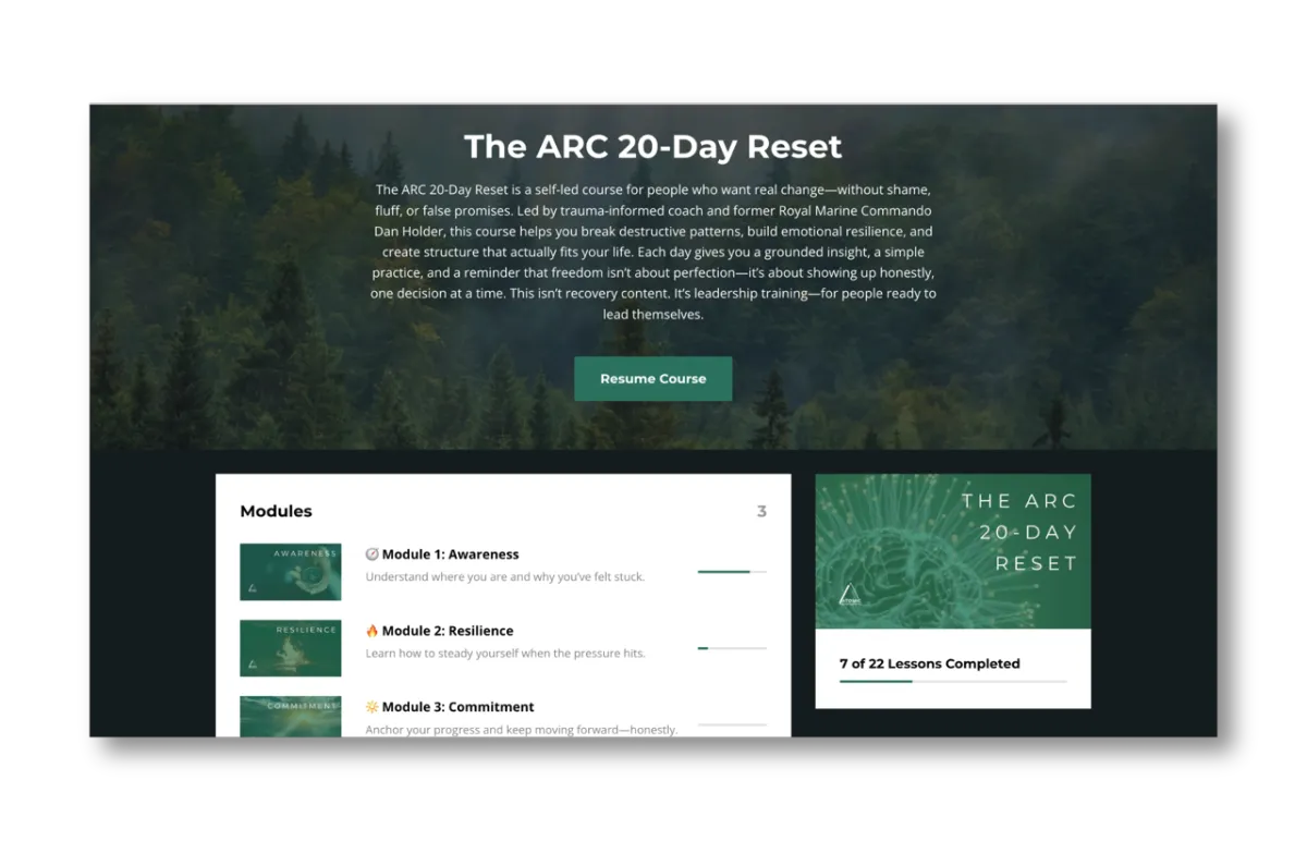 Rooted in resilience and transformation, ARC veteran-led coaching empowers individuals to break free from addiction, trauma and limiting beliefs. With a disciplined, action-focused mindset, each session delivers clarity, accountability and sustainable change. ARC creates a clear path forward, backed by grit, strategy and unwavering support.