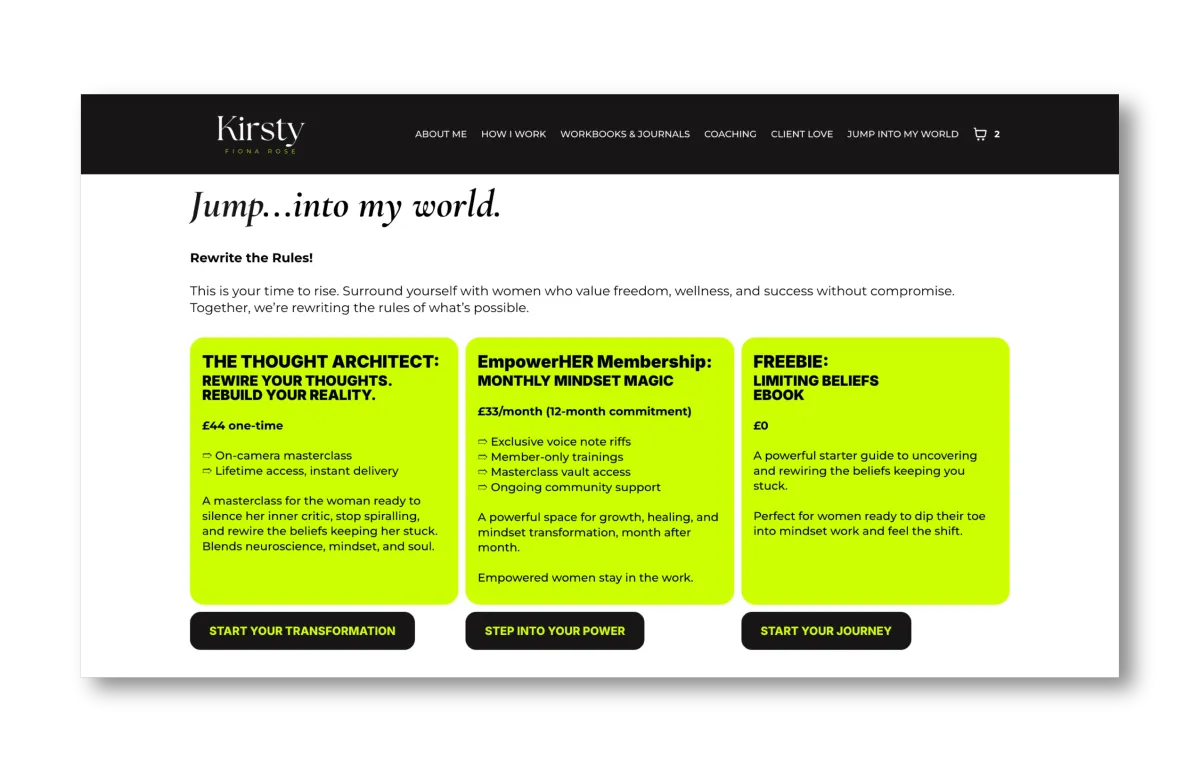 For Kirsty Fiona Rose, we created a bold, dynamic website packed with all the essentials for a truly transformative client experience, while integrating smart automation to support her growing training platform.