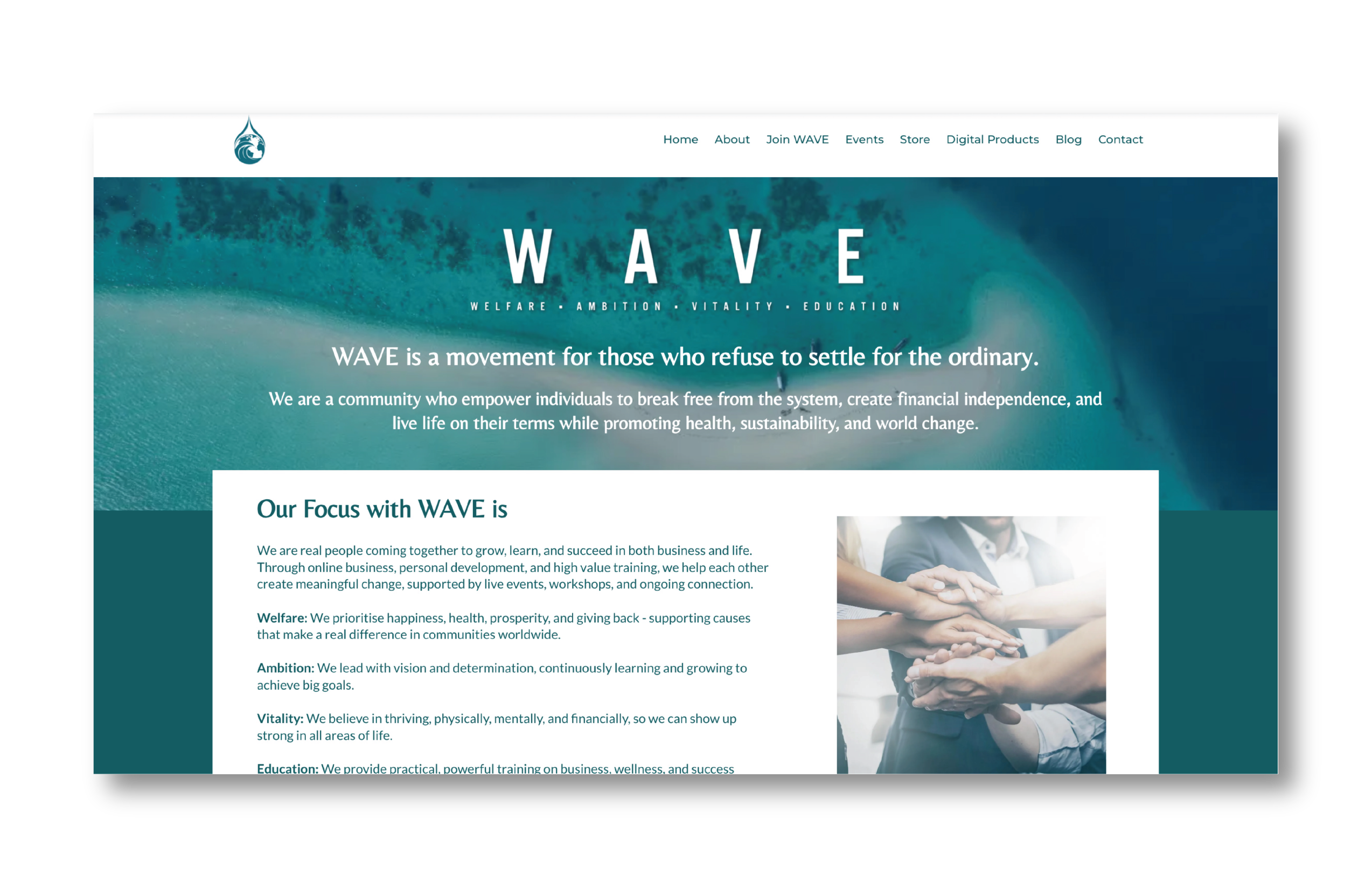 WAVE is a bold, purpose-driven community empowering individuals to break free from the system, cultivate financial independence, and create meaningful change - personally and globally. With a focus on health, sustainability, and self-sovereignty, their mission is anything but ordinary.